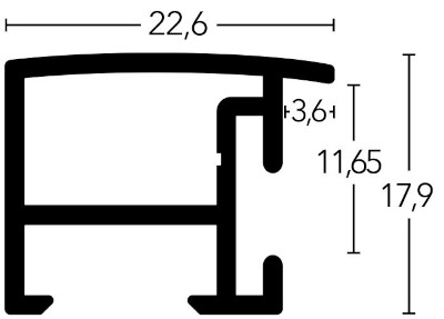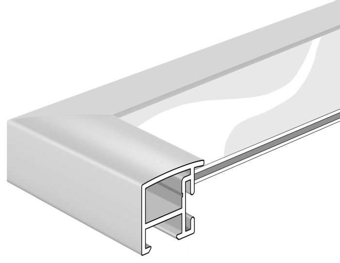 Der Alu Bilderrahmen Krefeld vom Qualitätshersteller DEHA Design hat ein abgerundetes Profil mit einer Profilbreite von 23 mm.
