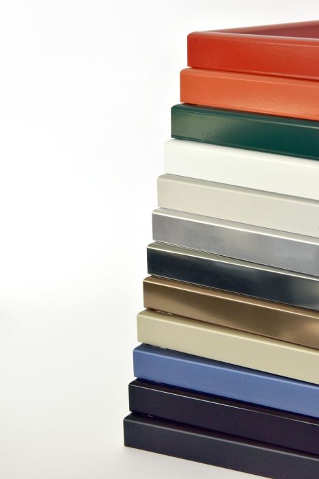Der Aluminium Bilderrahmen Münster ist in 6 matten und 5 glänzenden Eloxal-Farben, sowie 6 farbintensiven RAL-Farben erhältlich.