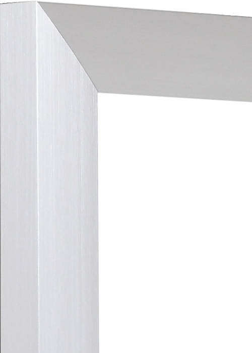 Der Alu-Bilderrahmen S3 hat ein glattes Profil. Die schmale Leiste mit nur 9 mm wird durch eine kleine Schräge auf der Profiloberfläche unterstrichen, dadurch wirkt der Alu-Wechselrahmen leicht und elegant.