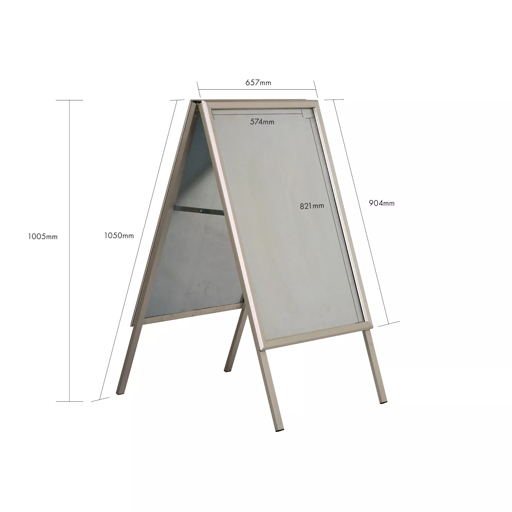 Speziell für den Einsatz im Freien angefertigt, hält der Kundenstopper Waterproof auch widrigen Wetterbedingungen wie Sturm und Regen stand. Ausgestattet mit wasserdichten Folien inkl. Dichtungsgummi, Wasserablauföffnungen im Rahmenprofil und robusten Klappscharnieren ist er perfekt geeignet, um im Regen zu trotzen und ihre Werbeplakate trocken zu halten.