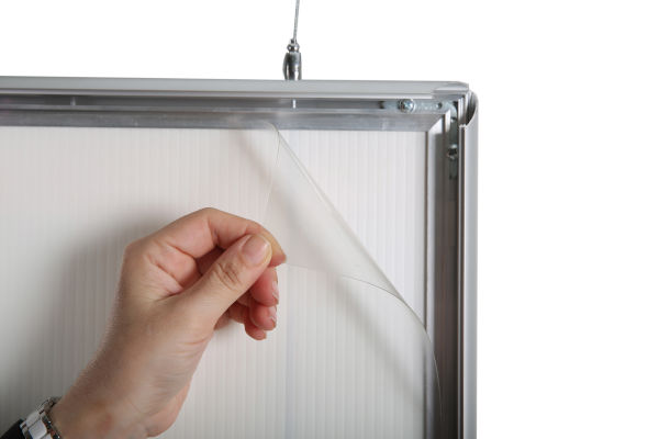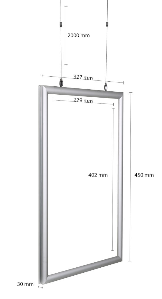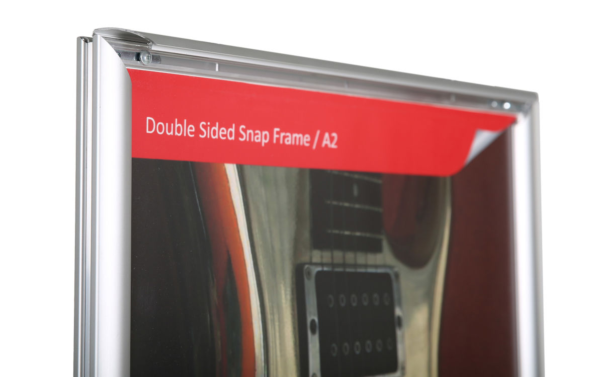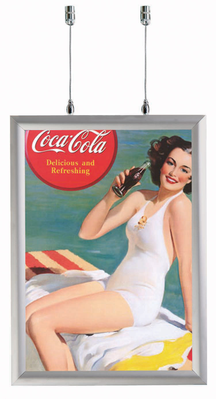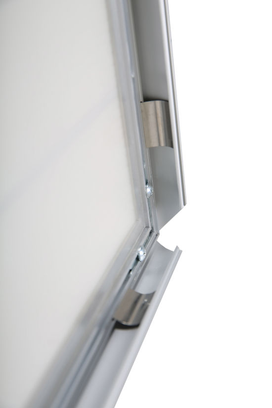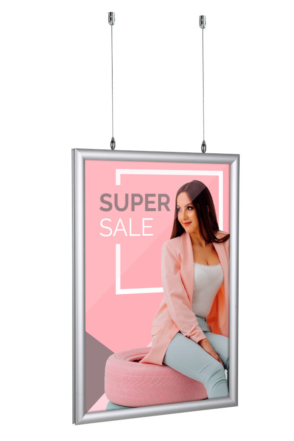 Unser silberner Doppelseitiger klapprahmen ist ideal für Deckenaufhängung im Schaufenster. Poster sind von beiden Seiten sichtbar.