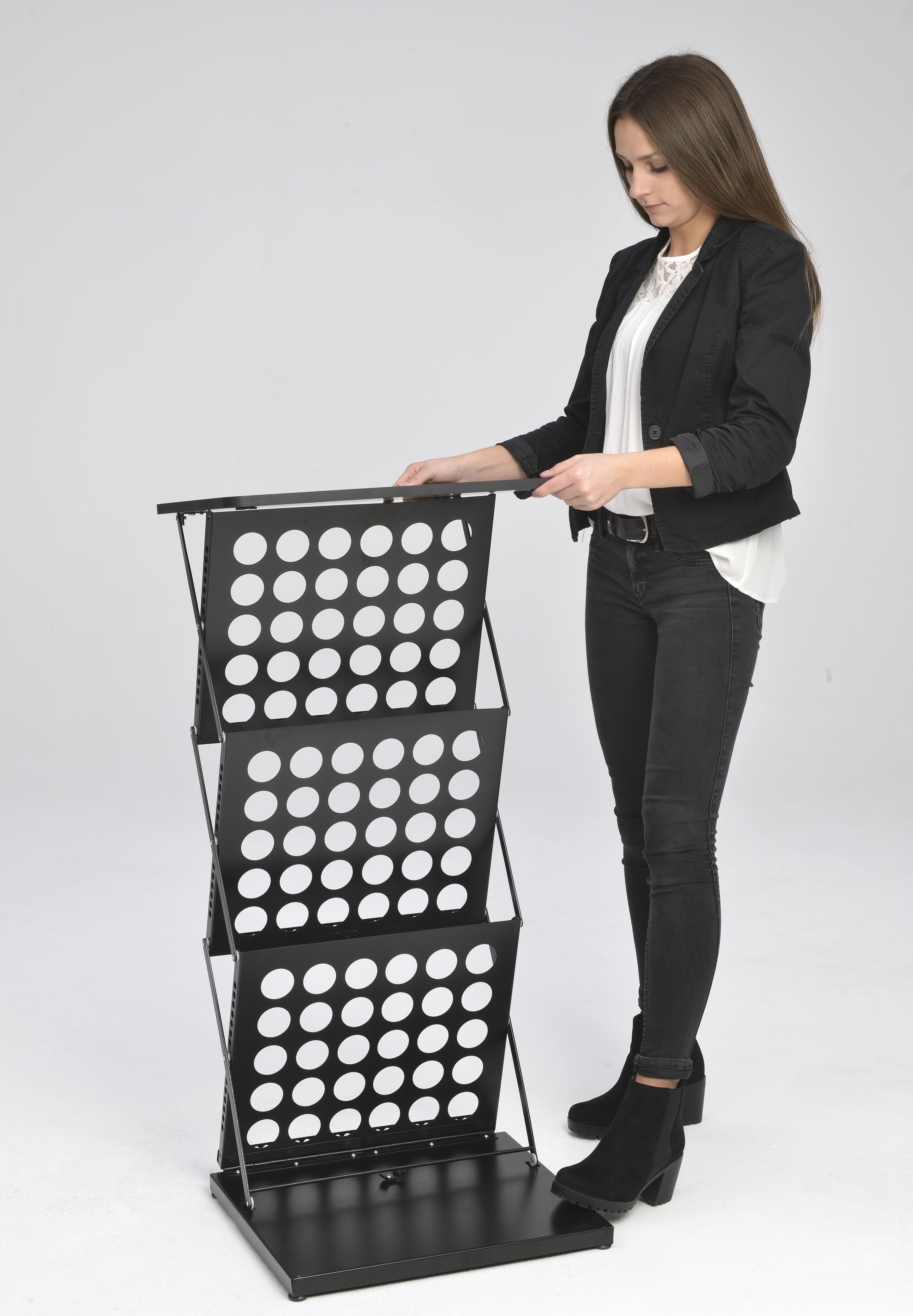 Eigenschaften "Falt-Prospektständer Stehpult, schwarz, Tischplatte schwarz, 3x DIN A4"