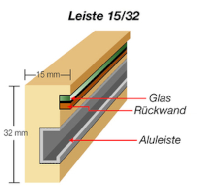 • Mit Normalglas, Acrylglas- und Antireflex-Acrylglas erhältlich