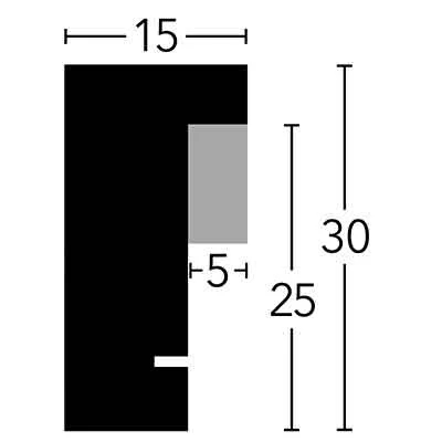Der Distanzbilderrahmen Paderborn aus Holz vom Qualitätshersteller DEHA Design hat ein schmales kantiges Profil mit einer Leistenbreite von 15 mm.