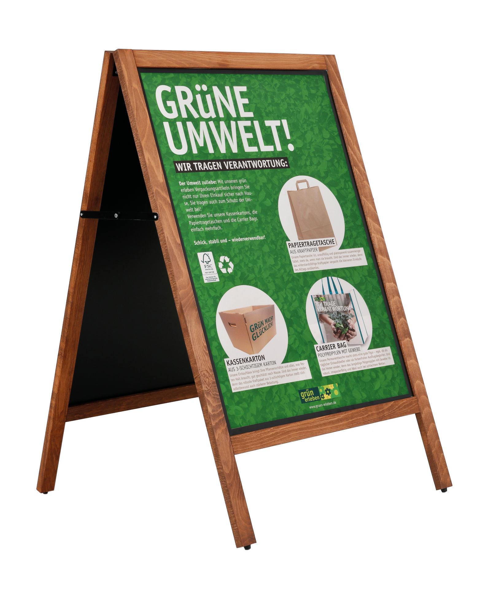 - Outdoor Plakatständer aus zertifiziertem, massivem Buchenholz, dunkel lasiert