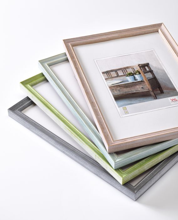 Der Holzrahmen Bench hat ein schmales gekehltes Holzprofil in 4 verschiedenen Farben. Der Holzrahmen rahmt ihre Bilder stilvoll und elegant. Der Rahmen Bench von der Bilderrahmenmarke Walther kommt bis zur Größe 20 x 30 cm mit Aufsteller.
