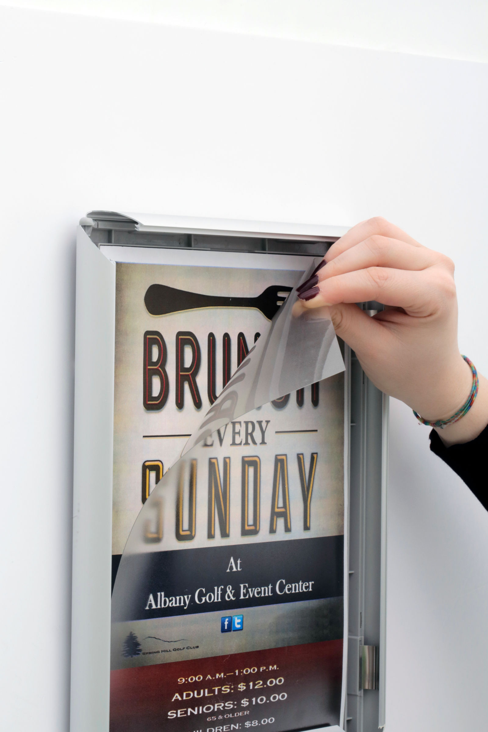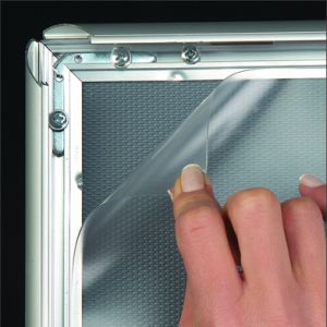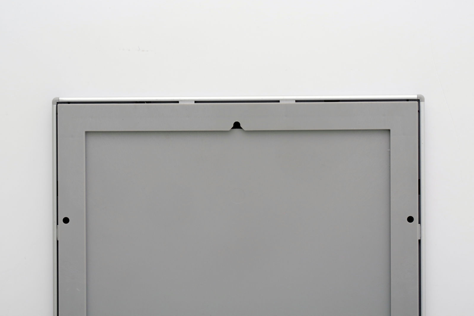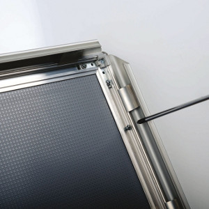 Der silbern eloxierte, aus hochwertigem Aluminium gefertigte Klapprahmen Profil 32 ist langlebig, superleicht und flexibel in der Anwendung. Der Austausch der Poster und Einrahmungsobjekte geht schnell von der Hand.