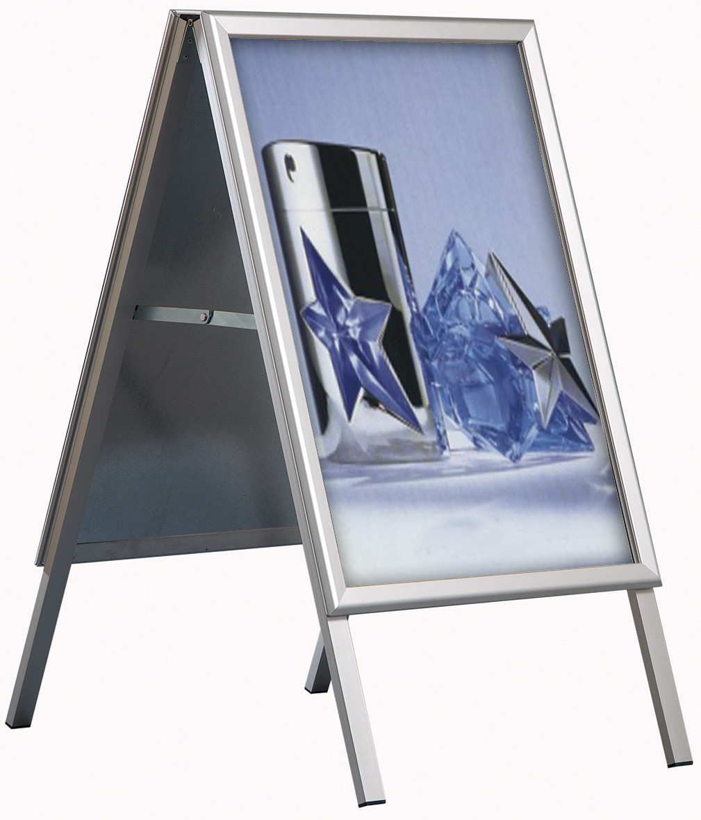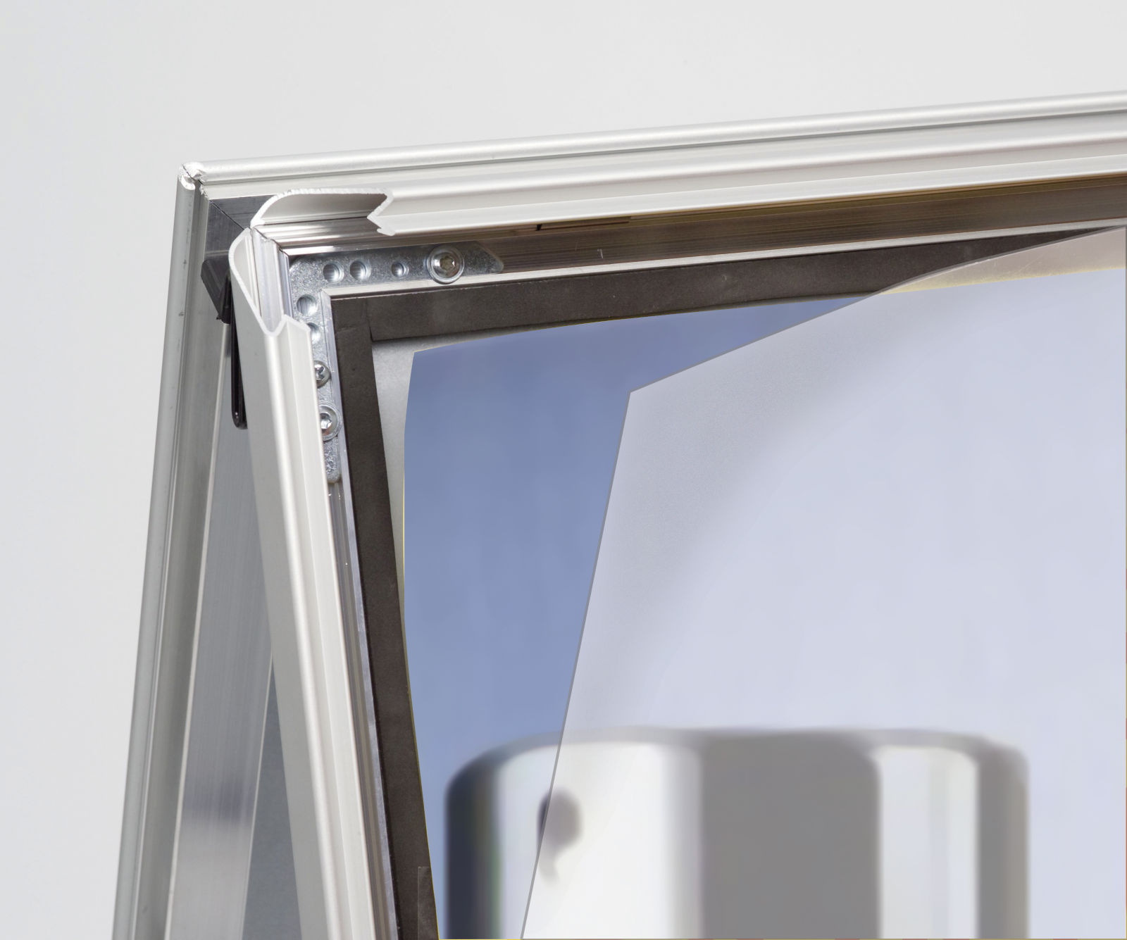 Speziell für den Einsatz im Freien angefertigt, hält der Kundenstopper Waterproof auch widrigen Wetterbedingungen wie Sturm und Regen stand. Ausgestattet mit wasserdichten Folien inkl. Dichtungsgummi, Wasserablauföffnungen im Rahmenprofil und robusten Klappscharnieren ist er perfekt geeignet, um im Regen zu trotzen und ihre Werbeplakate trocken zu halten.