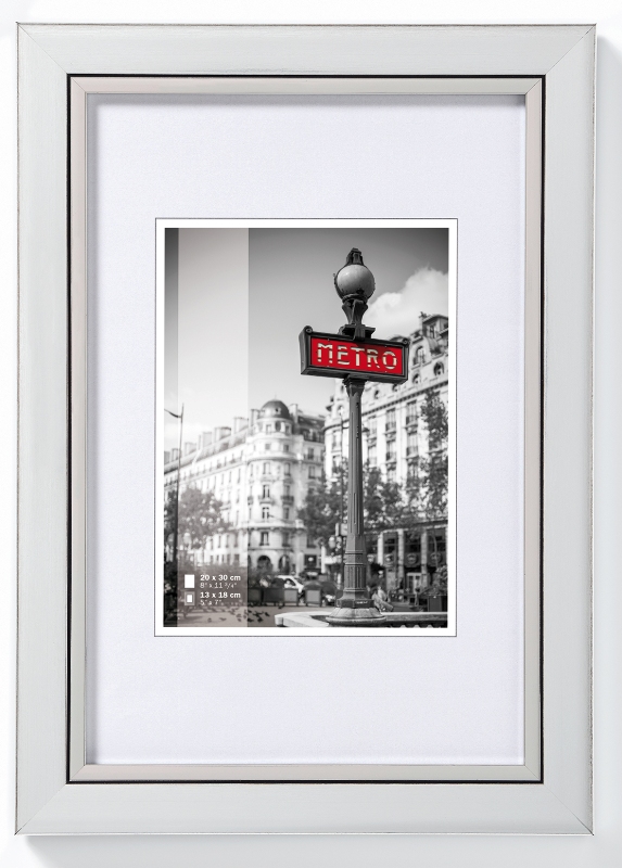 Der Kunststoffrahmen Metro hat ein flachesProfil mit einer zum Bild abgesetzten silber Kante. Es gibt ihn in 4 verschiedenen Farben. Der Kunststoffrahmen rahmt ihre Bilder stilvoll und elegant. Der Rahmen Metro von der Bilderrahmenmarke Walther kommt bis zur Größe 20 x 30 cm mit Aufsteller und ab 30 x 40 cm mit Galerieaufhänger.