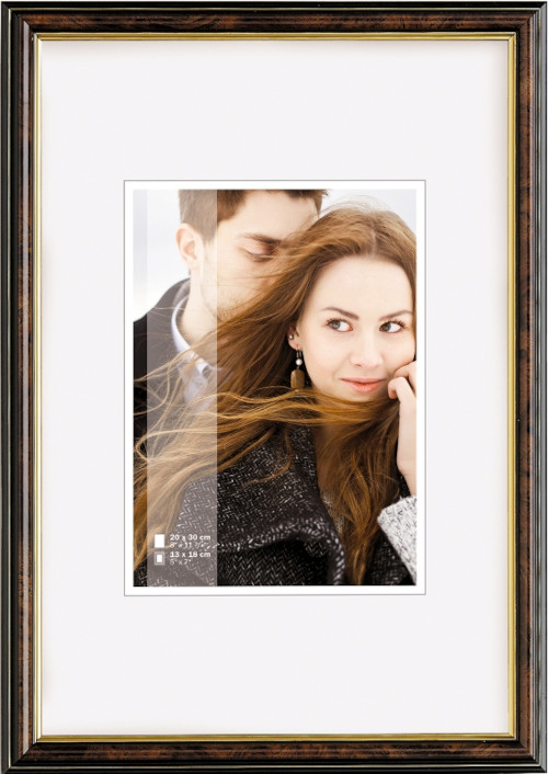Der edle Kunststoffrahmen Smell hat ein gekehltes Profil mit glänzender Oberfläche in Wurzelholzoptik und Goldinnen- und Goldaußenkante. Der Kunststoffrahmen rahmt ihre Bilder stilvoll und elegant und ist besonders auch als Dokumenten-Rahmen geeignet. Der Rahmen Smell von der Bilderrahmenmarke Walther kommt bis zur Größe 20x30 cm mit Aufsteller und in A4 mit Dokumenteneinleger.