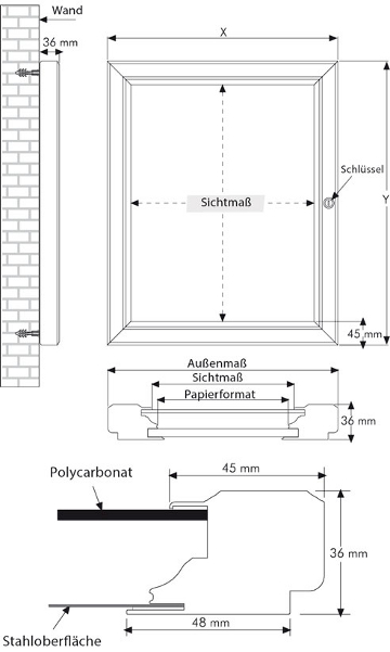Eigenschaften "Schaukasten Premio 12 x 21,0 x 29,7 (A4)"
